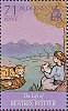 There's quite a large selection of domestic-cat stamps to mention this time, so again I think it will be easiest to take them in alphabetical order of the issuing countries. We start, then, with Alderney in the Channel Islands, which in July issued a sheet of six honouring famous children's author Beatrix Potter and showing scenes from her life. On the 71p value she is seen sketching a ginger cat sitting in a basket, described by the postal authority as part of her work for Peter Rabbit, although there are other opinions about this.